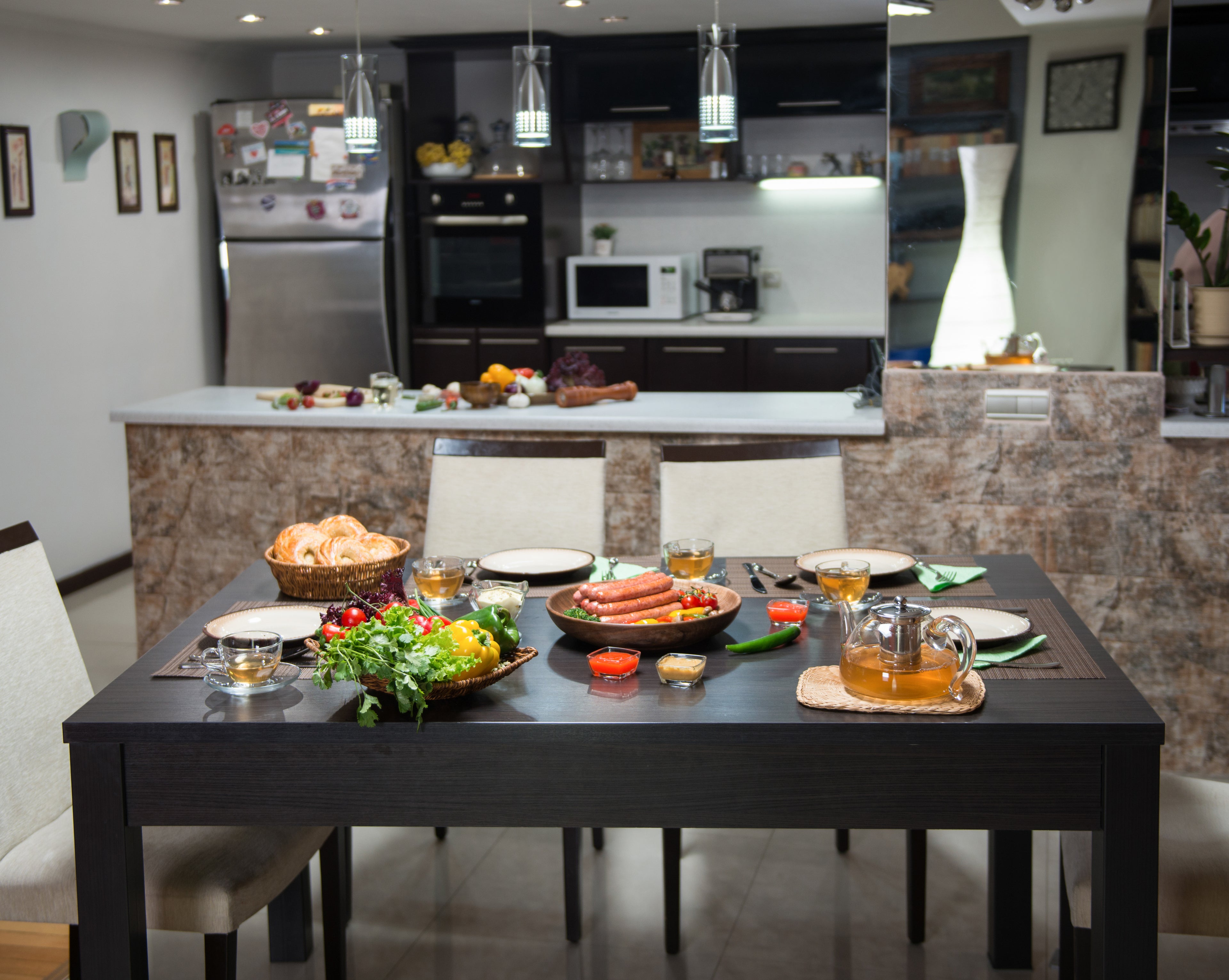 Blends modern design with functional lighting for an elevated dining experience.